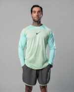 پارچه کوپر یکی از پارچههای پیشرفته است که به طور گسترده در تولید لباسهای ورزشی استفاده میشود. این نوع پارچه از ترکیبی از الیاف مختلفی مانند الیاف پلیاستر، الاستین و نایلون ساخته شده است. پارچه کوپر دارای تنفسپذیری بالا است که به بدن اجازه میدهد در طول فعالیتهای ورزشی به آسانی تنفس کند و از تعریق بدن خارج شود. همچنین، این پارچه قابلیت جذب رطوبت را دارد که باعث حفظ خشکی و راحتی بدن میشود. تیشرت آستین بلند نایک قواره دار، کاتری در رنگ های متنوع عرضه می شود.